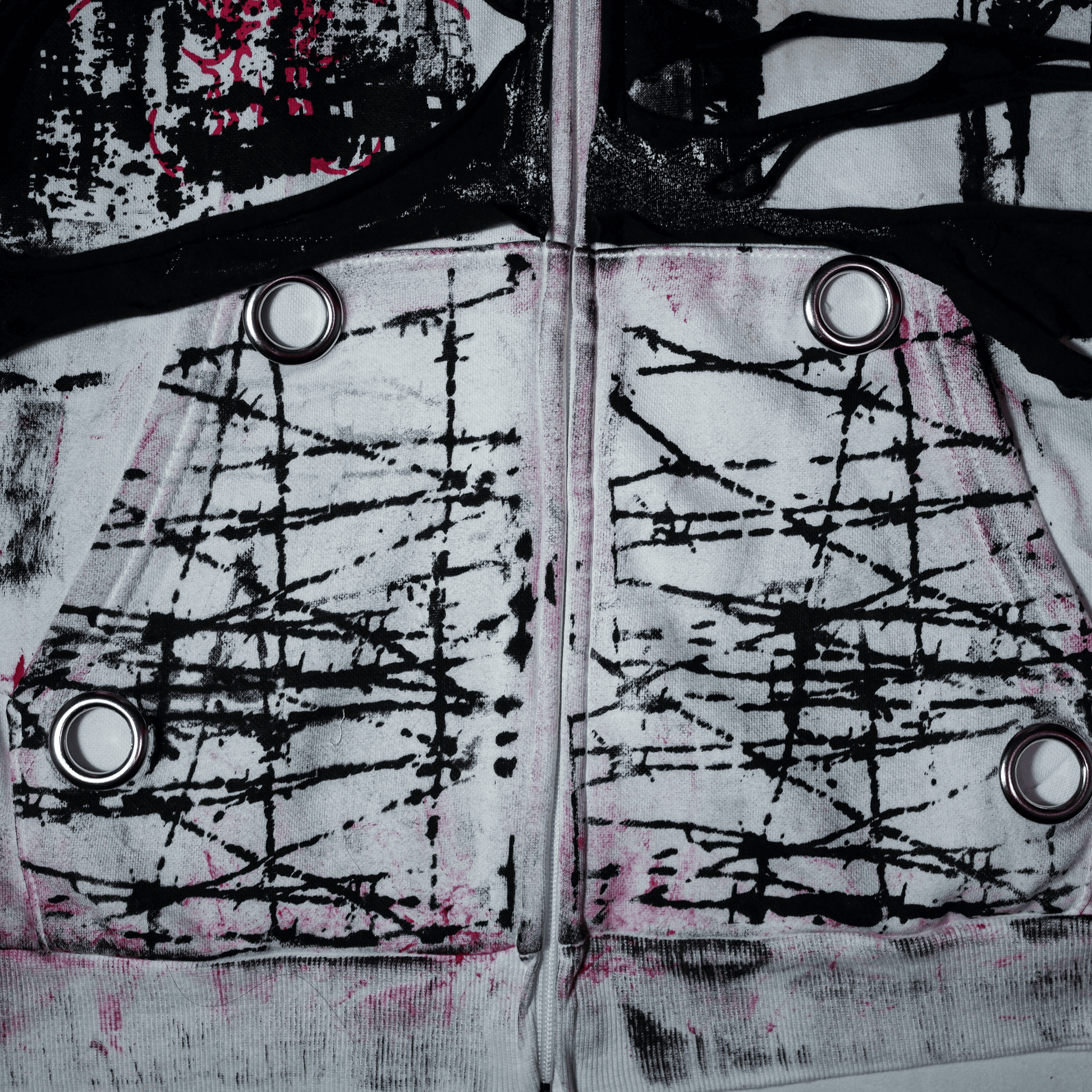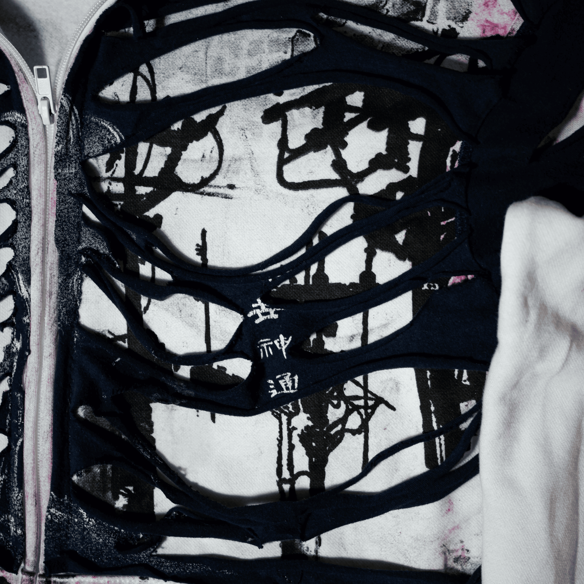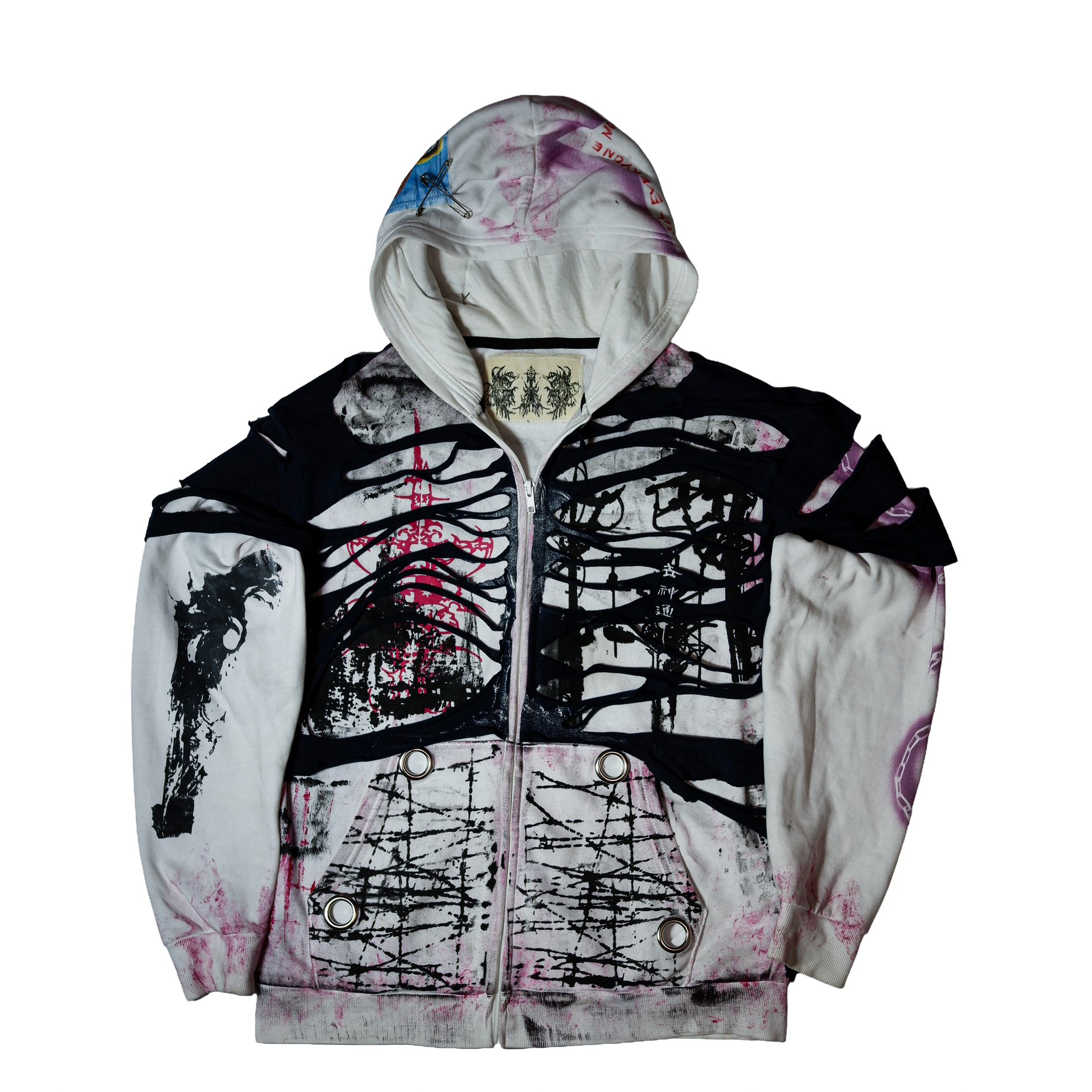 G.I.G ''Flamingo'' Distressed Zip Hoodie — One of One (Black/White/Pink)